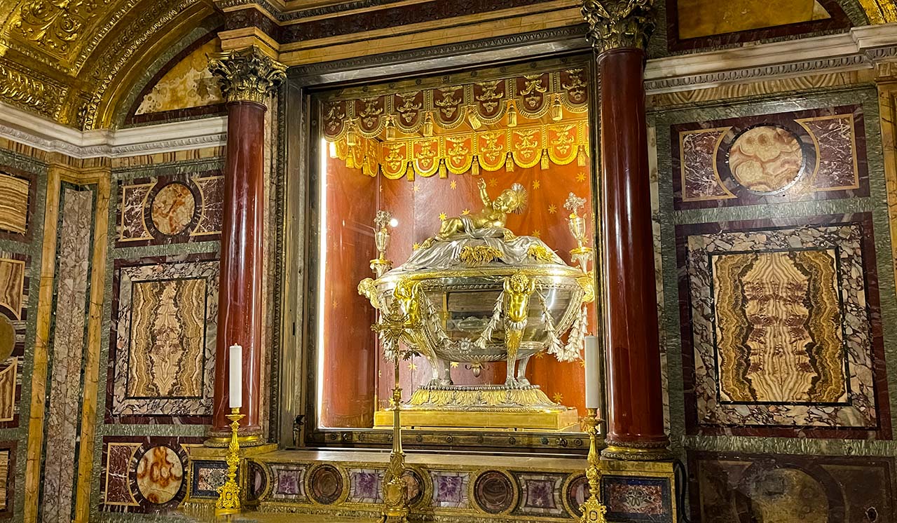 Beneath the high altar of Santa Maria Maggiore lies the Holy Crib, a reliquary said to contain pieces of the wooden crib from the Nativity of Jesus. This relic, encased in a gilded crystal reliquary, draws pilgrims and visitors who come to pay homage and reflect on the humble beginnings of Christ.