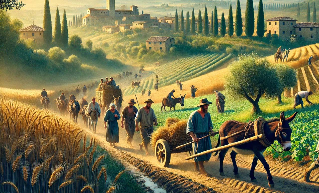 Farmers are among the first to rise and leave their homes. The land is the lifeblood of San Gimignano, and agriculture forms the backbone of the village economy. These early hours are crucial for work in the fields, where much depends on the season. In spring, they might be plowing and sowing the fields with wheat or barley, using heavy wooden plows drawn by oxen.