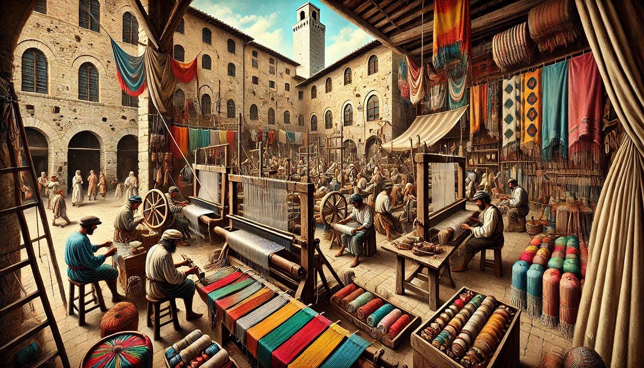Meanwhile, the skilled craftsmen of San Gimignano are hard at work in their nearby workshops, contributing to the village’s bustling economy. The village is renowned for its fine textiles, especially its high-quality wool, which is dyed using natural pigments to create vibrant hues of red, blue, green, and yellow.